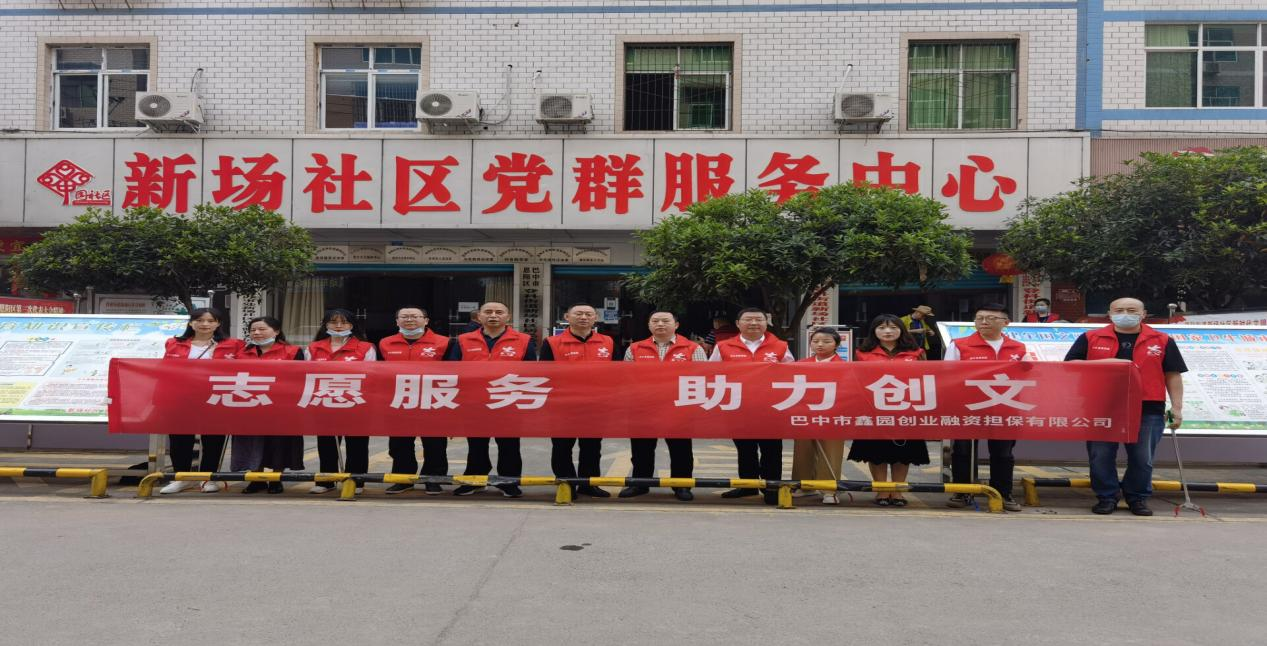 7月30日上午,巴中市鑫園創(chuàng)業(yè)融資擔保有限公司黨支部組織公司黨員志愿者和青年志愿者到恩陽區(qū)新場社區(qū)開展“志愿服務(wù)、助力創(chuàng)文”活動。