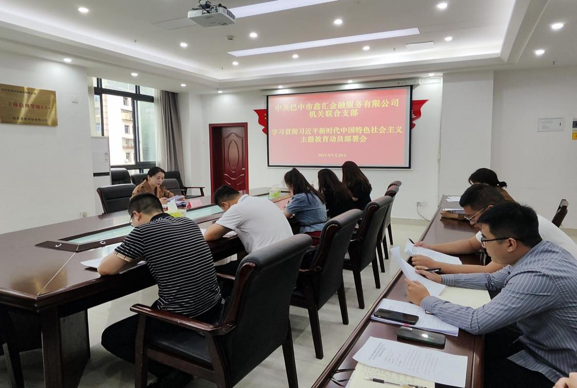 2023年9月20日下午,中共巴中市鑫匯金融服務(wù)有限公司機(jī)關(guān)聯(lián)合支部召開學(xué)習(xí)貫徹習(xí)近平新時(shí)代中共特色社會(huì)主義主題教育動(dòng)員部署會(huì),會(huì)議由黨總支委員、副總經(jīng)理、工會(huì)主席、機(jī)關(guān)聯(lián)合支部書記茍琳主持,機(jī)關(guān)聯(lián)合支部全體黨員參加。
